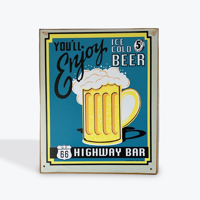 キンキンに冷えたビール(ICE COLD BEER HIGHWAY BAR)ビンテージ加工 アメリカンブリキ看板