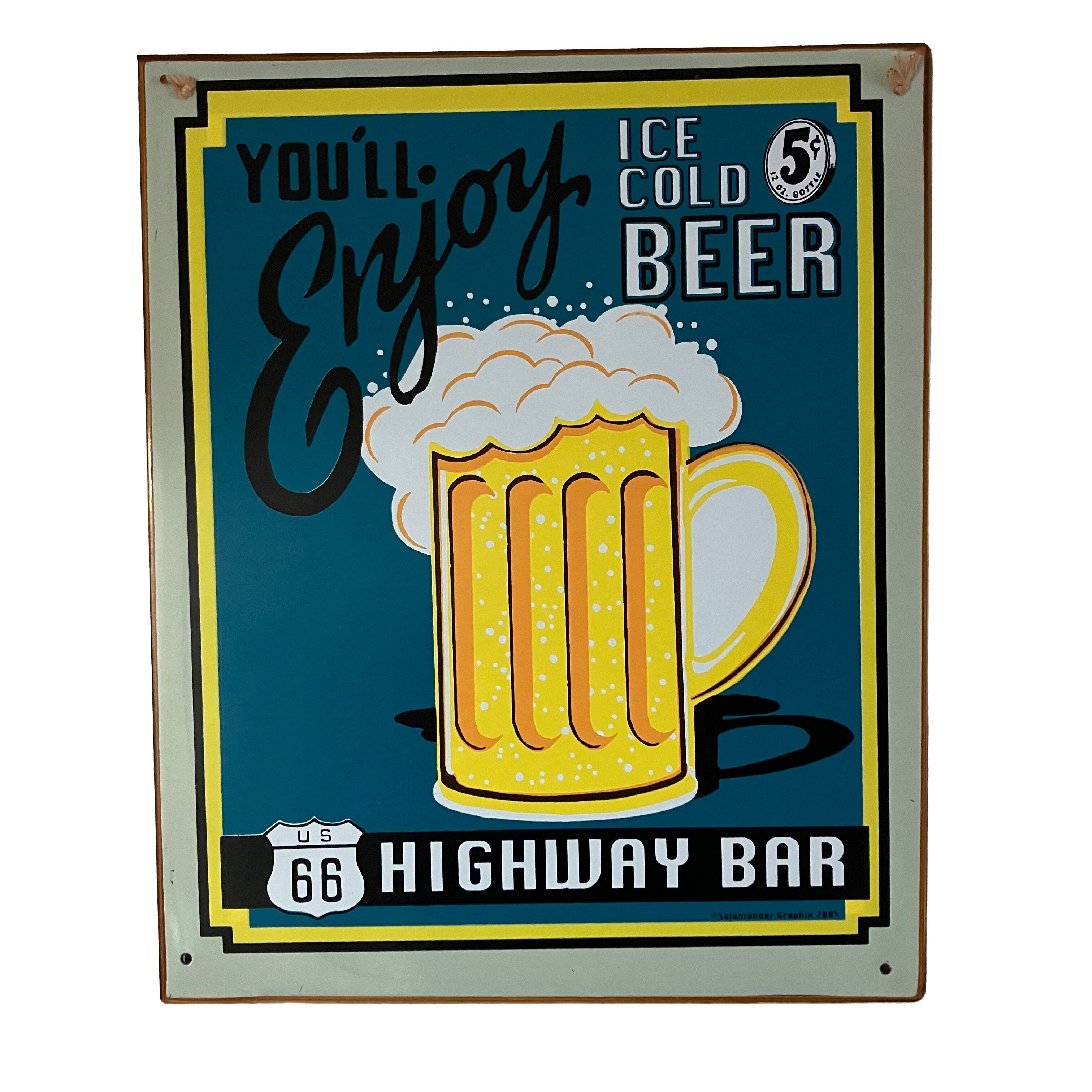 ICE COLD BEER HIGHWAY BARの看板があなたのお部屋やガレージに訪れるすべての人に、ワクワクとした楽しい気分を与えること間違いなしです。是非、お楽しみください。