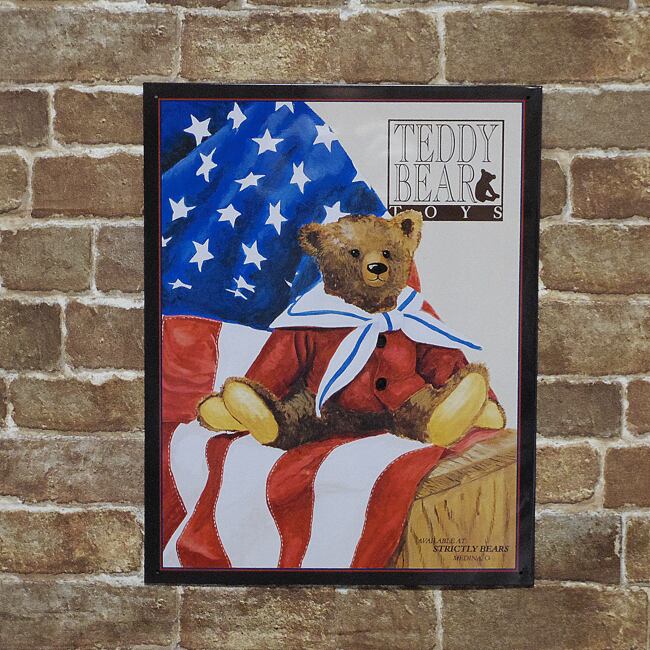 星条旗の上にのっているテディベアが可愛い、アメリカンブリキ看板です。